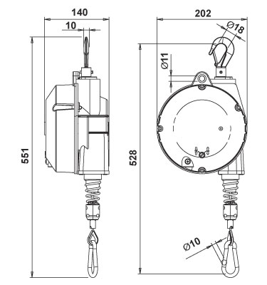 TECNA Stainless Steel Cable Balancers from BALANCERSDirect.com are a multifunctional and durable spring / tool balancer, featuring a nylon, aluminum or rubberized-aluminum body material. Furthermore, they carry the load on a stainless steel wire rope. TECNA balancers make tools nearly weightless, reducing operator fatigue and improving safety and ergonomics. As the tool is repositioned the stainless steel cable extends and retracts smoothly from the aluminum housing, providing full range of motion. Tension adjustment is easy and precise.