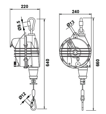 TECNA Stainless Steel Cable Balancers from BALANCERSDirect.com are a multifunctional and durable spring / tool balancer, featuring a nylon, aluminum or rubberized-aluminum body material. Furthermore, they carry the load on a stainless steel wire rope. TECNA balancers make tools nearly weightless, reducing operator fatigue and improving safety and ergonomics. As the tool is repositioned the stainless steel cable extends and retracts smoothly from the aluminum housing, providing full range of motion. Tension adjustment is easy and precise.