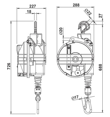 TECNA Stainless Steel Cable Balancers from BALANCERSDirect.com are a multifunctional and durable spring / tool balancer, featuring a nylon, aluminum or rubberized-aluminum body material. Furthermore, they carry the load on a stainless steel wire rope. TECNA balancers make tools nearly weightless, reducing operator fatigue and improving safety and ergonomics. As the tool is repositioned the stainless steel cable extends and retracts smoothly from the aluminum housing, providing full range of motion. Tension adjustment is easy and precise.