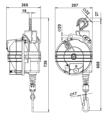 - Safety device against load dropping due to the spring breakage (>3kg)