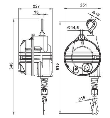 Most TECNA Stainless Steel Cable Balancers are also available in Explosion Resistant (ATEX-Rated) and Nylon Cable (synthetic rope) models. Optional Rubber Guards may also be available.